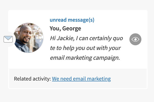 4. Messages connected to a offer or exchange will have a note underneath: 'Related activity: ......'
